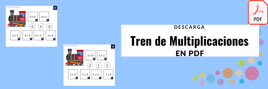 El siguiente material para Descargar en pdf es un material que llamamos «Tren Multiplicador». Te recomendamos poner mica en cada pieza y pegar sobre cartón para que sea más duradero el material didáctico y lo puedas seguir reutilizando en próximos años.